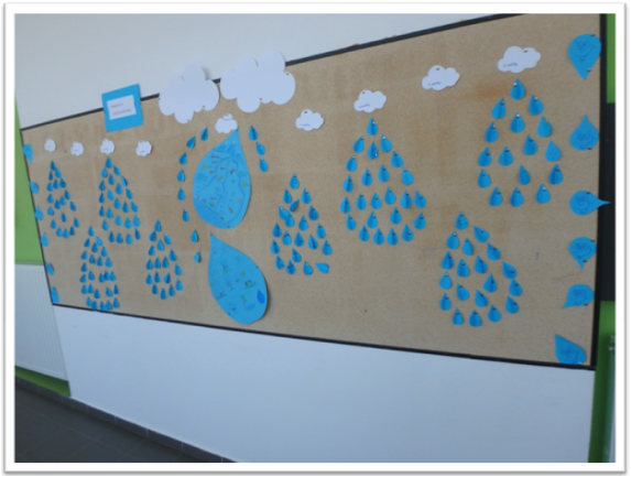 E naphoz méltóan először is ásványvizet hoztunk magunkkal inni! Majd elkészítettük saját vízcseppjeinket, amelyből közös tablót készítettünk, melyen tanulóink és tanáraink is helyet kaptak egy – egy vízcsepp formájában.